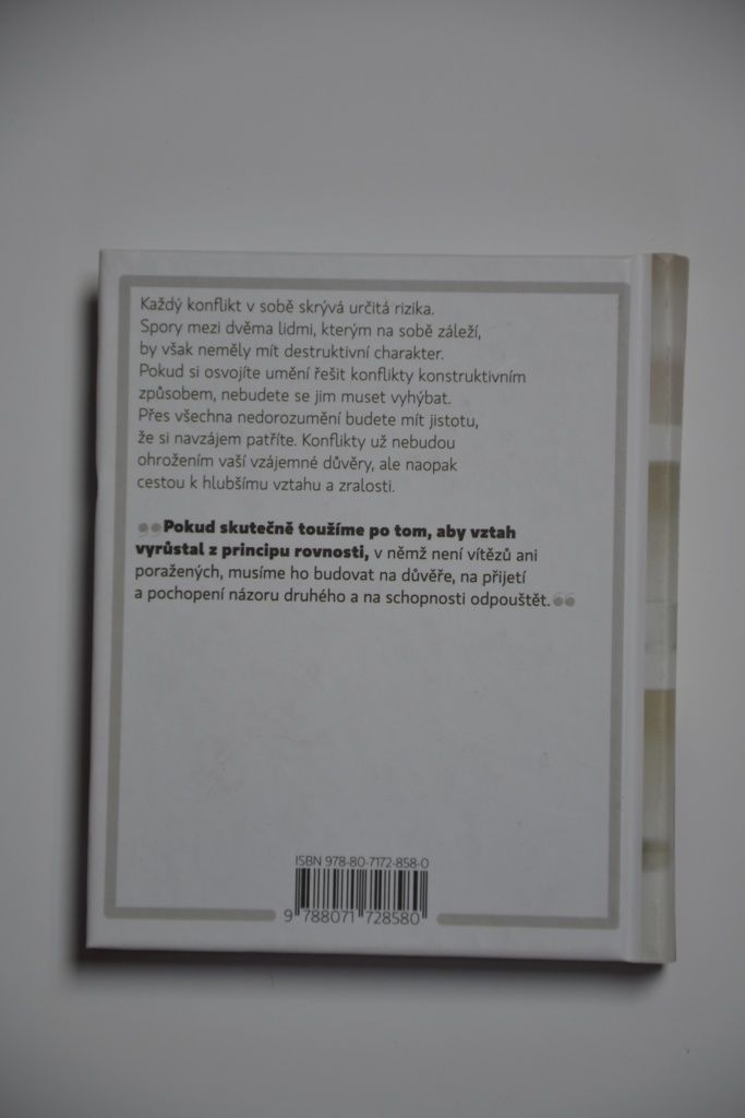 Každý konflikt v sobě skrývá určitá rizika. Spory mezi dvěma lidmi, kterým na sobě záleží, by však neměly mít destruktivní charakter. Pokud si osvojíte umění řešit konflikty konstruktivním způsobem, nebudete se jim muset vyhýbat. Přes všechna nedorozumění budete mít jistotu, že si navzájem patříte. Konflikty už nebudou ohrožením vaší vzájemné důvěry, ale naopak cestou k hlubšímu vztahu a zralosti.